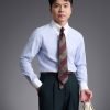 Phong cách Business: Sử dụng Collar Bar để tạo điểm nhấn tinh tế, thêm pocket square trắng.