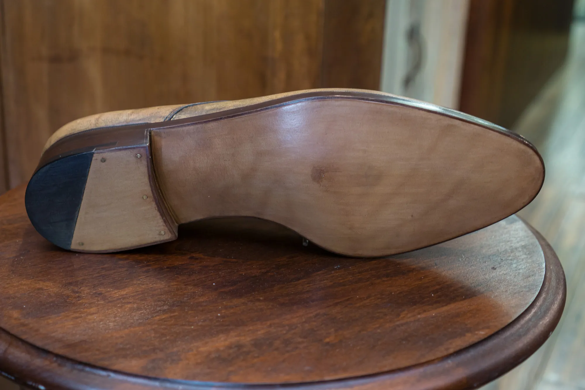 Từ đây, những đôi giày chính thức “có eo”. Bevelled waist được nhận biết khi ở khoảng giao điểm đế – gót này đã có những đường lượn vào tạo thành góc nhỏ hơn 90 độ; ngày nay, thành phần này sẽ được thấy ở những hãng giày thủ công vừa và lớn cả trong lẫn ngoài lãnh thổ Việt Nam. Sẽ là bình thường nhìn từ phần đế lên, bạn sẽ thấy chúng có một sức hấp dẫn bất ngờ – vì cũng phải thôi, tốn công đẽo gọt tạo eo như vậy cơ mà…